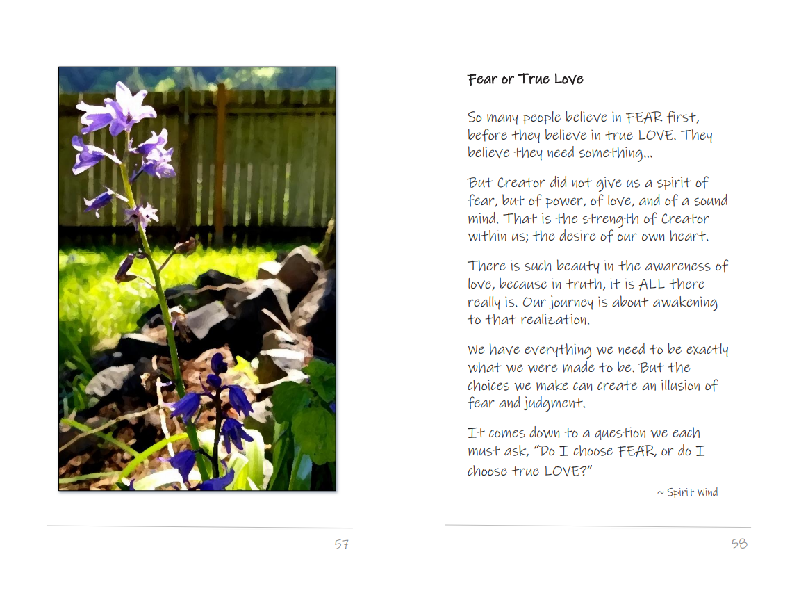 While I was sleeping one night, in 2014, I suddenly awakened to a message flying across the room that said, “Embrace the world with love words, and the world will be changed.”